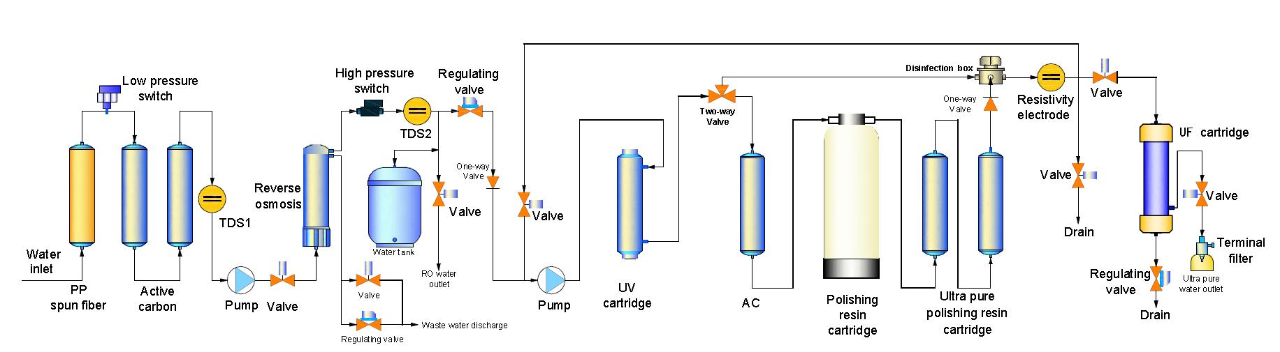 • 可直接制備RO純水、高純水或18.2MΩ-cm的超純水