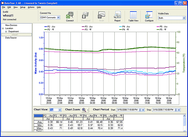 使用DataTrac Software ,可以清晰與直觀的呈現采集到的水分活度與溫度數據。DataTrac軟件經過不斷的修改,現在已經變成易使用,并可根據您的具體需要改變其曲線。